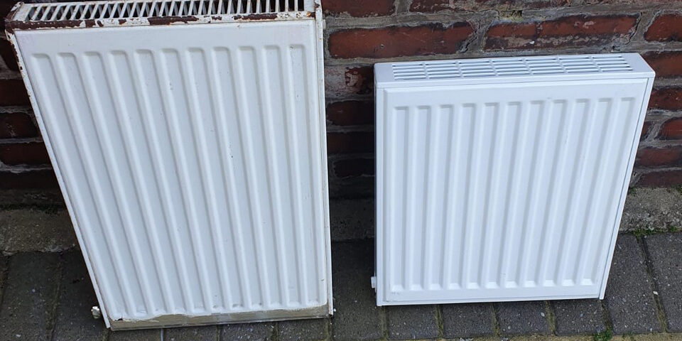 Old rusty radaitor changed for a new one